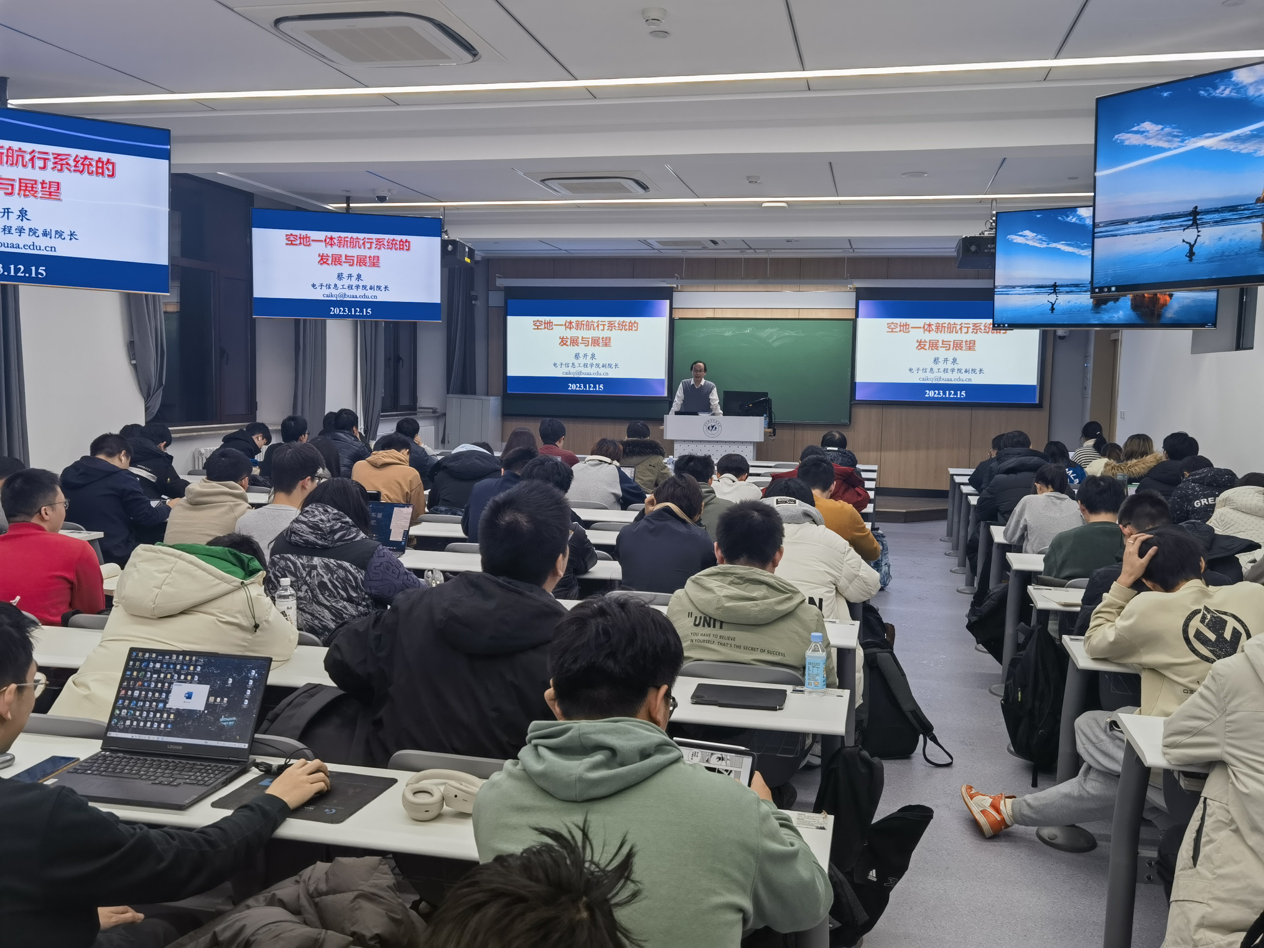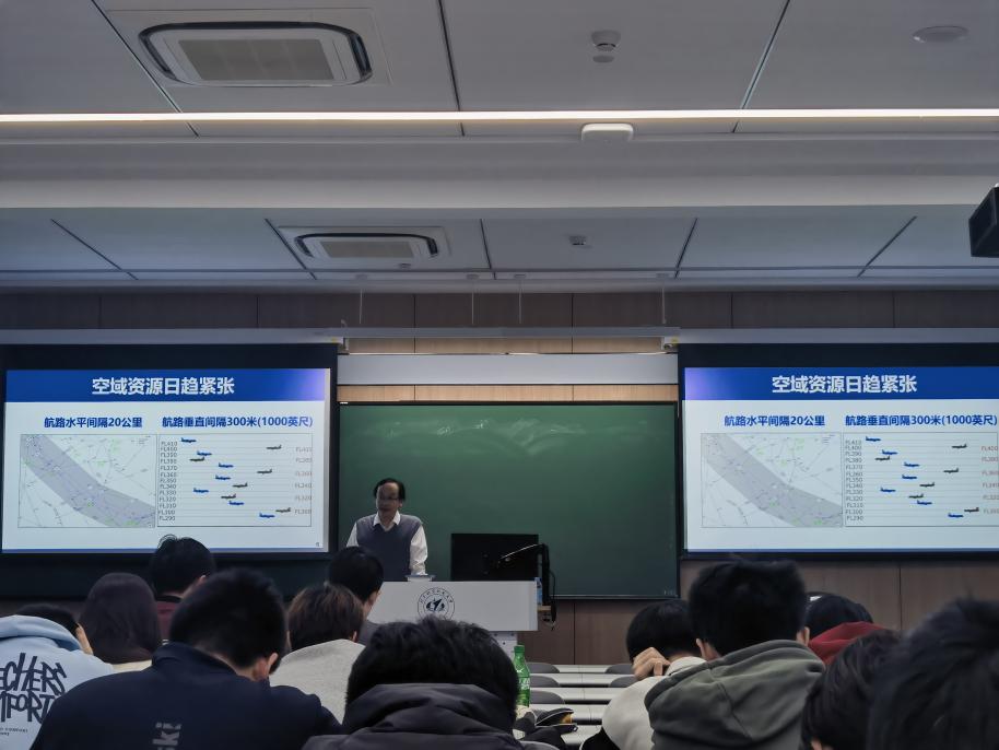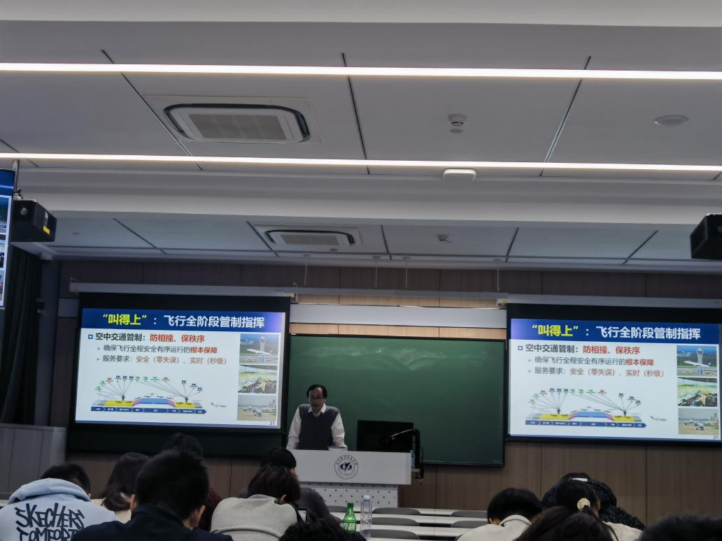 接着,蔡老师带同学们关注了马航MH370以及东航MU5735两架飞机的事故,分析两次事故的原因,强调了地空通信对飞行安全的重要性,发展成熟稳定、独立自主的航行系统是重中之重,由此蔡老师以北航空事卫星一号为例为我们讲述了北航对新航行系统的贡献。“北航空事卫星一号”是我国空事卫星系统首颗关键载荷技术验证卫星,在各方面保障飞机“看得见”、“叫得上”、“飞得准”、“管得稳”。北航围绕国家需求,在技术创新、人才培养、行业合作等方面为新航行系统作出了显著贡献,2000年至今,共获国家奖16项,其中发明一等奖2项,科技进步一等奖2项,为推动航空技术的飞跃发展和全球航空运输的可持续发展贡献了重要力量。