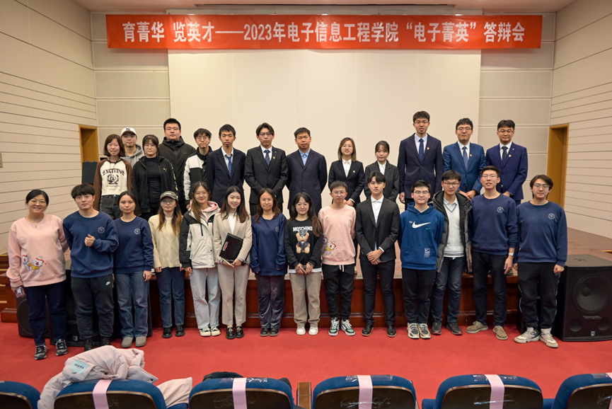 在评委问辩中,在场评委们对如何平衡学习科研和员工工作的时间、个人未来的发展打算、完成的科研成果的具体内容等方面进行提问。一问一答中,“电子菁英”便有了定义。“电子菁英”是多年如一日的艰苦奋斗与拼搏进取;是在科研挑战面前勇于创新,敢为人先的责任担当;是帮助同学的兼爱无私与笃行奉献;是涉猎广泛,德智体美劳全面发展下的追求卓越。或许每个人都有心中“电子菁英”的标准,但候选人们的身体力行,赢得了评委和观众的掌声与肯定。