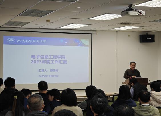 2023年12月29日上午,WilliamHill中文官方网站召开2023年度领导班子述职述廉暨全面从严治党民主测评大会,全院教师参加会议。会议由行政副经理戴飞主持。